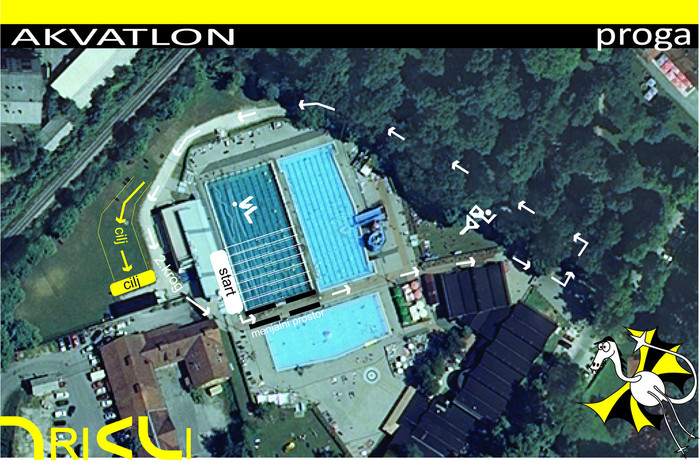 mlajši – 75 m plavanja (3 dolžine), 2 kroga (približno1000 m) teka,