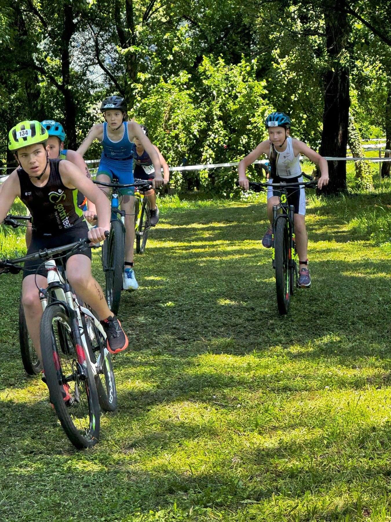 Letniki 2011 in 2012, oziroma po naše starejši dečki so v Gorici tekmovali z gorskimi kolesi. Po 200 metrih plavanja, so nadaljevali na tehnično precej zahtevno kolesarski progi v parku. Nik je imel na kolesu obilico dela s prehitevanjem svojih sotekmovalcev in je v cilju končal nekje v sredi najbolj množičnega štarta dneva. Tekmovalo je namreč več kot 40 fantov v tej kategoriji.