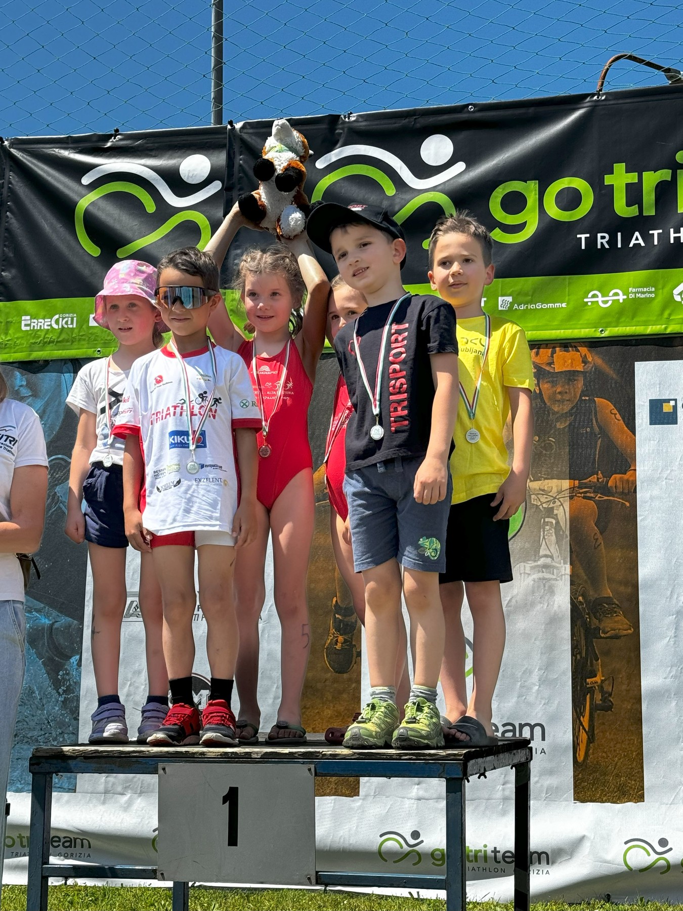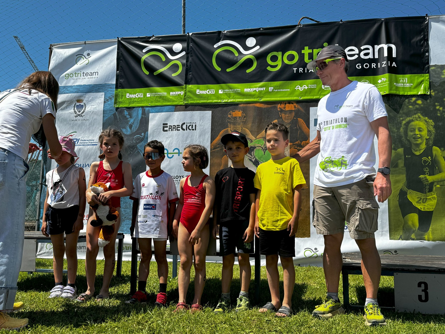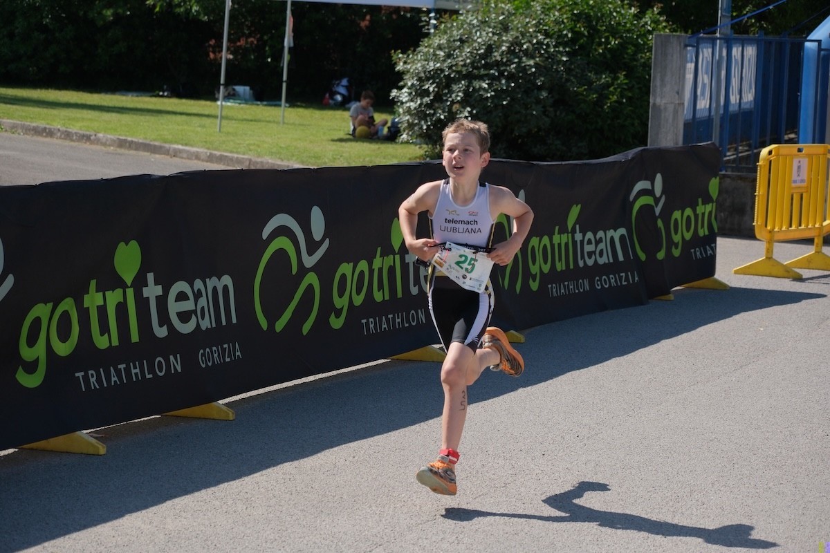 Tekmo so otvorili najmlajši, letniki 2017 in 2018, za večino je bila to prva teka triatlona. Čestitke Naju za prvi opravljen triatlon, zagotovo mu bo ostal v lepem spominu. Tudi Vera in Juš v naslednji skupini sta izkusila italijansko konkurenco na kratkem triatlonu. Juš je vse naloge opravil brez težav in na veliko veselje vseh, prvi prečkal ciljno črto. Vera je žal imela tehnične težave na izhodu iz prve menjave in je nekaj časa trajalo, da je lahko pričela s kolesarskim delom, tako da je v cilj prišla malce razočarana. Nekaj minut po koncu njene tekme je bil nasmeh zopet na njenem obrazu. Pozitivne besede staršev, trenerjev in predvsem bogata okrepčevalnia v cilju triatlona so poskrbeli, da bo tudi zanjo izkušnja iz Gorice lepa.
