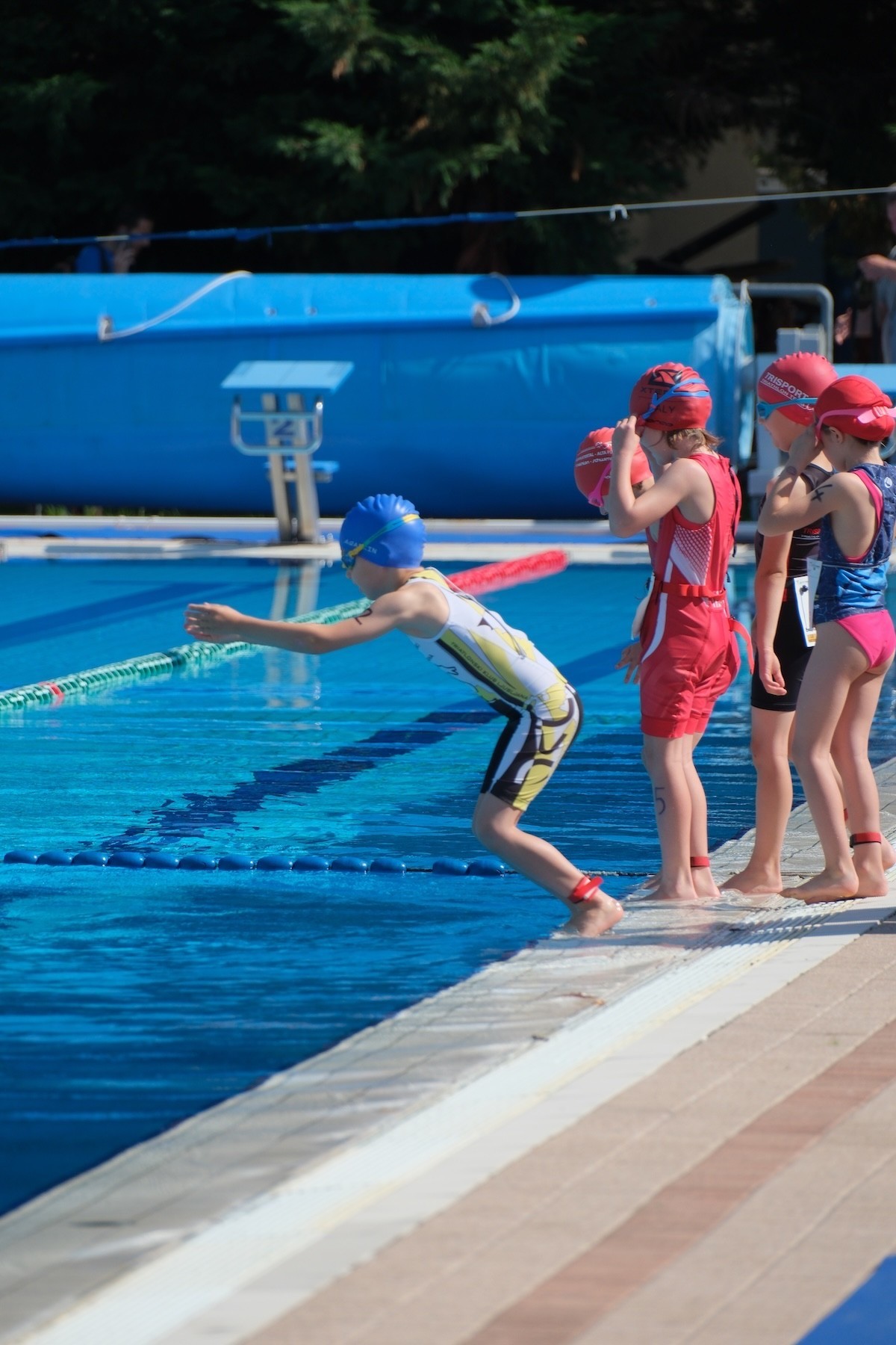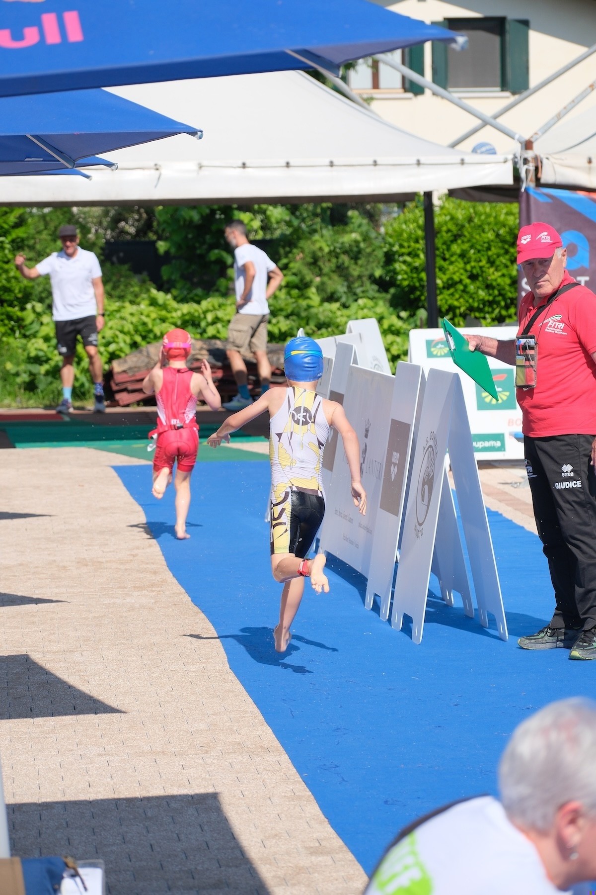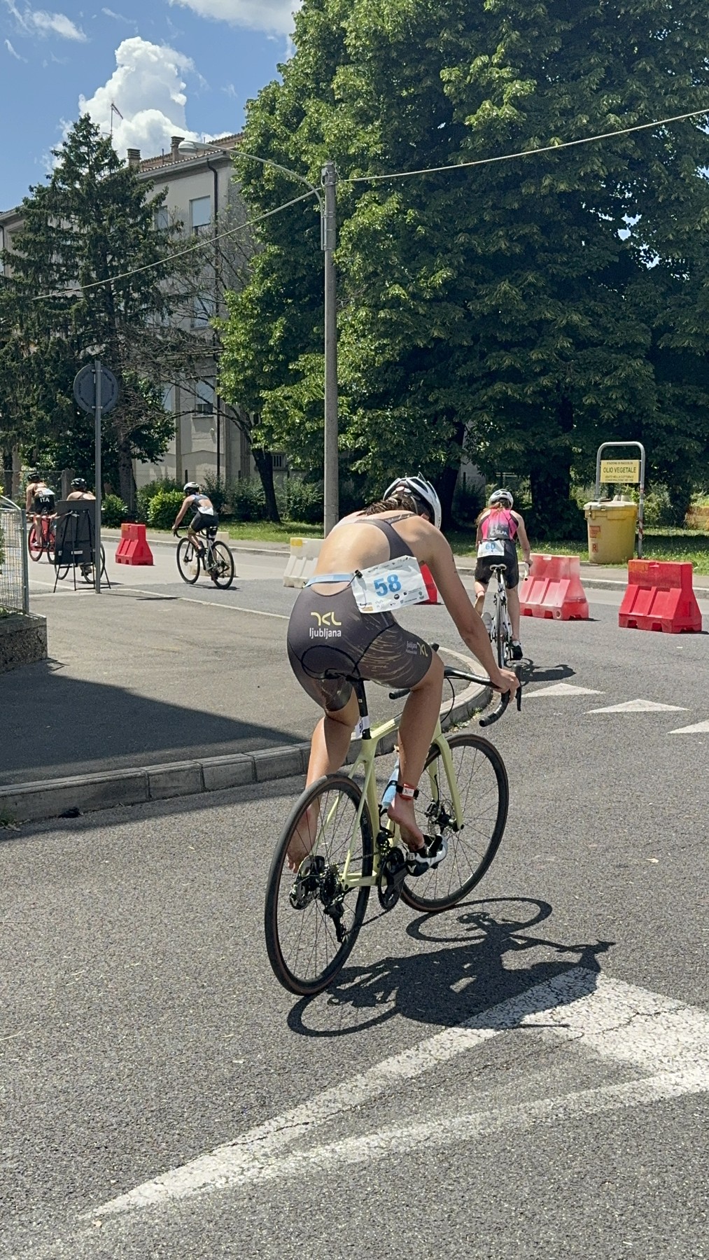Tekmo so otvorili najmlajši, letniki 2017 in 2018, za večino je bila to prva teka triatlona. Čestitke Naju za prvi opravljen triatlon, zagotovo mu bo ostal v lepem spominu. Tudi Vera in Juš v naslednji skupini sta izkusila italijansko konkurenco na kratkem triatlonu. Juš je vse naloge opravil brez težav in na veliko veselje vseh, prvi prečkal ciljno črto. Vera je žal imela tehnične težave na izhodu iz prve menjave in je nekaj časa trajalo, da je lahko pričela s kolesarskim delom, tako da je v cilj prišla malce razočarana. Nekaj minut po koncu njene tekme je bil nasmeh zopet na njenem obrazu. Pozitivne besede staršev, trenerjev in predvsem bogata okrepčevalnia v cilju triatlona so poskrbeli, da bo tudi zanjo izkušnja iz Gorice lepa.