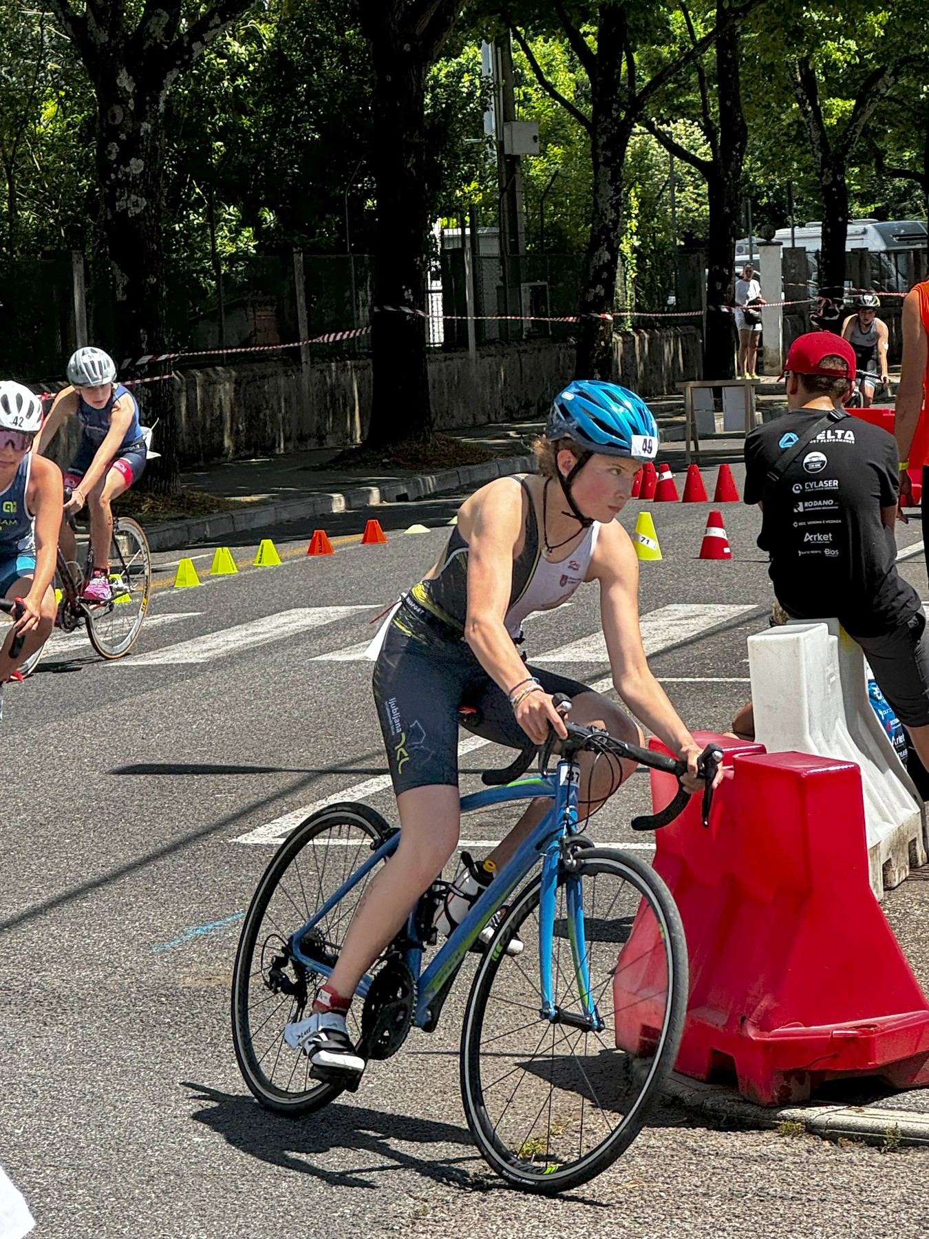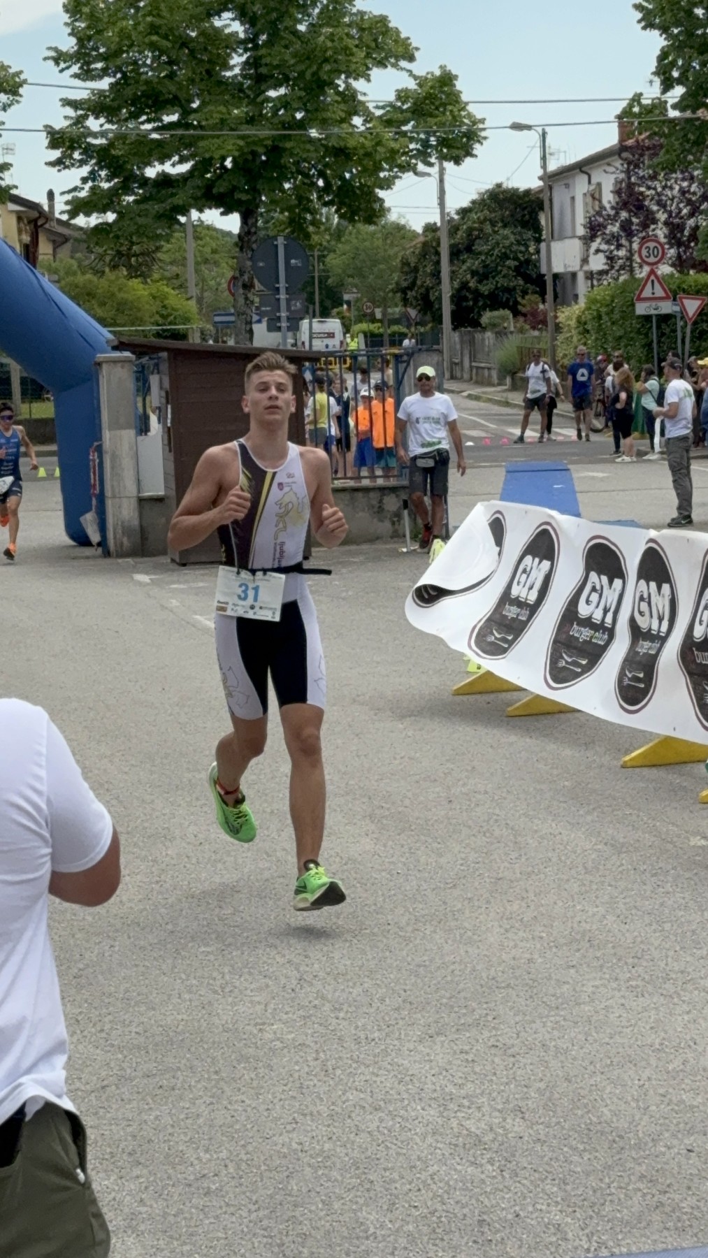 Kadeti in mladinci pa so se v Gorici pomerili v enduro formatu, to pomeni, da so sestavili kar dva kratka super sprint triatlona. Zelo zanimivo, tehnično zahtevno, saj ima takšen format kar 5 menjav, od tega eno takšno, ki je ne nismo najbolj vajeni (iz teka na plavanje). V Italiji imajo na tekmah številke na traku okoli pasu, tudi to vnaša dodaten element, ki oteži celo tekmo.