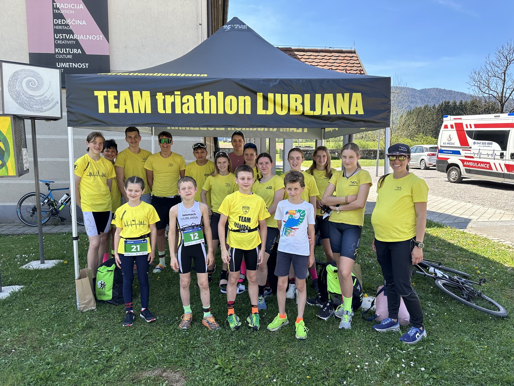 Vera, ki je opravila s svojim 1. duatlonom za TK Ljubljana, Juš in Jakob. Prav vsi so končali na zmagovalnem odru :)