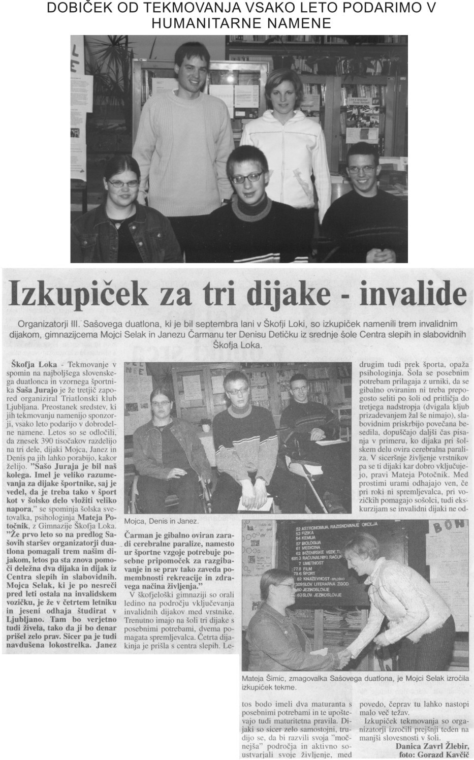 Na zadnjem duatlonu letošnje sezone je s časom 56.43 zmagal Bojan Cebin, pred Damjanom Kromarjem, oba prihajata iz TK Ribnica. Tretji je bil Franci Pirc, Novice Extreme. Med ženskami je ponovno slavila Mateja Šimic, 1.02.46, pred Natašo Nakrst, obe Trisport Kamnik, tretja pa je bila Tanja Novak. Med sedminmi udeleženci iz našega kluba je bil med moškimi najhitrejši Peter Harnold, med ženskami pa Tadeja Vilar. Tekmovali so še Rudi Kolander, Andrej Štrukelj, Dejan Jaki , Ljuba Vilar Štrukelj in Irena Hočevar.