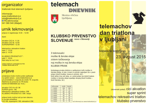 Telemachov dan triatlona v Ljubljani, 23. avgusta