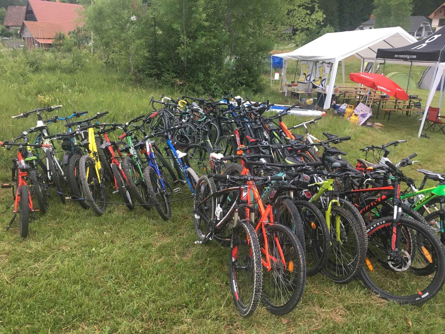 Dnevi so tako hitro minili in že smo bili pri četrtku. Ponovno smo se prebudili z jutranjo telovadbo, za zajtrk pa smo si privoščili mlečni pirin zdrob. Danes je bil prav poseben dan, saj je bil dan za tekmo. Naši najstarejši udeleženci so sicer tekmo izpustili in se raje podali na kolesarsko popotovanje in naredili več kot 80 km. Odpravili so se na kolesarjenje proti Cerknici, Vrhniki, Borovnici, Podpeči in nazaj na Rakitno. Prav super kolesarski krog. Najmlajši so se pognali na triatlonsko tekmo in sicer najprej posamično in nato še štafetno. Po tekmi so si vsi zaslužili Cake popse, ki jih je pripravila Enjina in Tianova mami. Tudi najstarejši so jih dočakali po končanem kolesarjenju. Po tekmi smo hitro bežali v tabor, da smo se skrili pod streh pred dežjem, najstarejši pa so prišli v tabor nekoliko mokri. Po dobrem pasulju smo se odpravili na pohod na razgledno točko nad Rakitno. Dež je lepo ponehal in imeli smo lep razgled. Pri sestopu pa se je ulilo kot iz škafa. Malo smo vedrili pod drevesi, pa ni in ni hotelo ponehati. Nato nam je domačin prinesel 5 dežnikov, da so se lahko tisti brez palerin skrili pred dežjem in nadaljevali smo pot proti težko pričakovanim dovoljenjem za nakup sladoleda v trgovini. Po sladkanju na šolskem igrišču smo se odpravili nazaj v tabor. Dež je lepo ponehal, tako da smo lahko še zadnjič zakurili ogenj in si privoščili različne pečene dobrote.