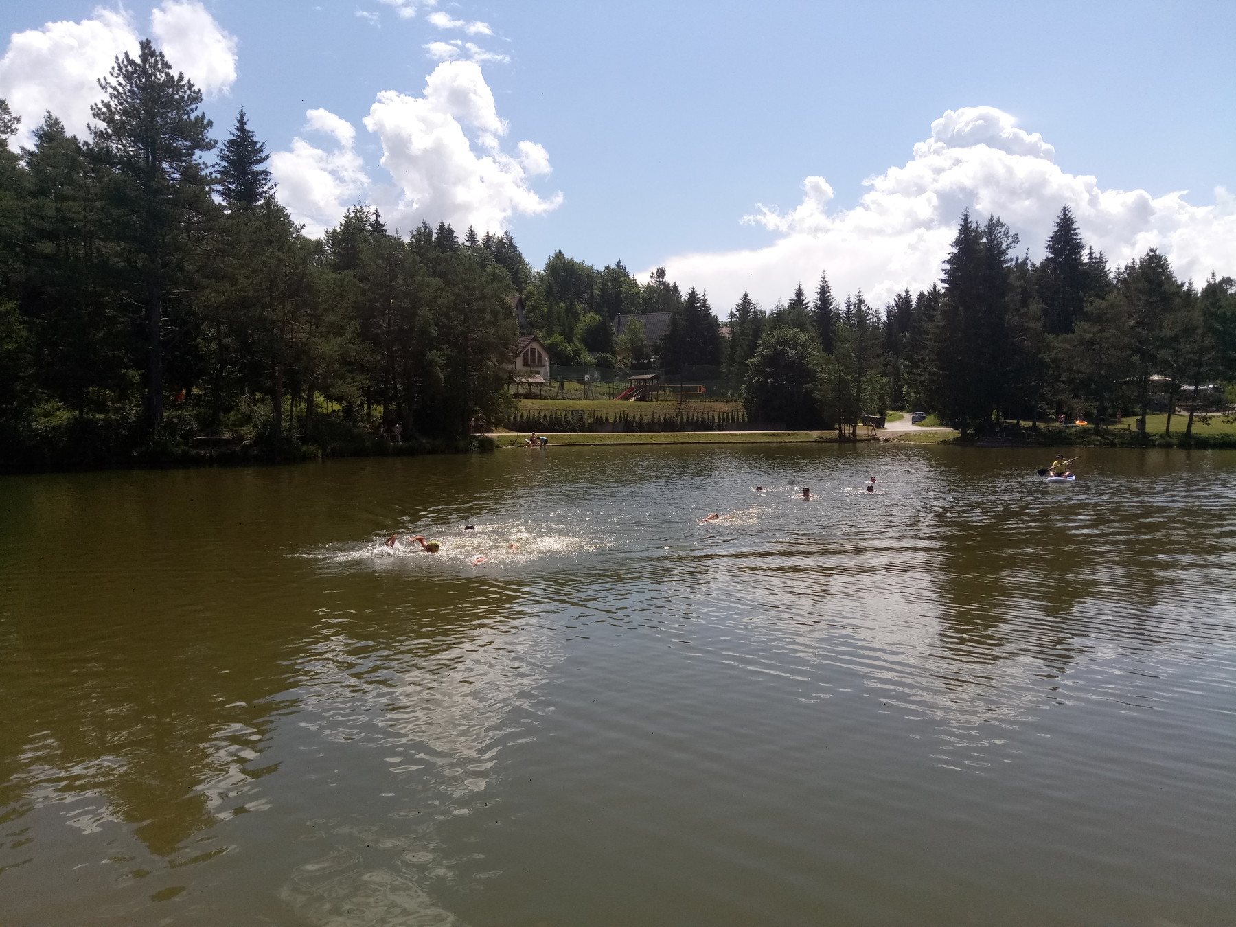 Sredin jutranji tek za dobro počutje je bil super za aktiviranje možganov, saj smo imeli v planu kar naporen izlet na tolmune Iške. Cesta do tja je zelo razgibana, za nami pa sta tudi že bila dva naporna dneva. Po klancu gor in dol, pa spet gor in dol in dolg spust do Iške, ampak do tolmunov je še hoja in to čez vodo. Smo se kar potrudili, da smo prišli do tolmunov. Tam pa je ledena voda in super tolmun za skakanje v vodo, kar nekaj pogumnih triatloncev imamo, ki so si upali skočiti z vrha. Za malico smo pojedli dve ogromni lubenici, pa kar veliko kruha , salame, sira, paštete in zelenjave. S tem smo se okrepčali za težek vzpon nazaj proti Rakitni, k sreči je bilo tudi nekaj spusta. Res utrujeni smo se vrnili v tabor pozno popoldne in imeli zelo pozno kosilo, makarone z bolonjsko omako. Tisti z malo več energije, so izkoristili še za kopanje. Ponovno je sledil taborni ogenj in pečenje vsega, kar se je v taboru lahko našlo.