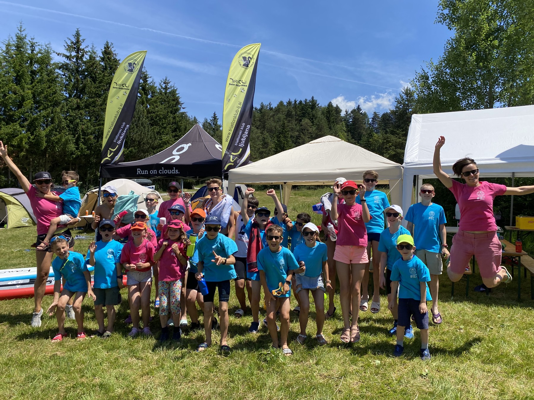 vodi. Edino Lora se je odločila za TRIATLON. BRAVO LORA! Ostali smo se oblekli v kopalke. Šli smo do jezera in starejši smo imeli ogled kolesarske in tekaške proge. Plavalno (okrog oddaljene boje do bližje in na stopnice) nam je pokazal in opisa Mitja. Nato smo imeli START. Plavali smo vsi OK, razen nekateri so zelo dobro. Kolo smo imeli tudi čez en klanec, ki si ga nihče ni želel. Tekli smo tudi vsi dobro. Mlajši so navijali za nas. VSI SMO PRISPELI V CILJ USPEŠNO! Potem smo imeli še čas v